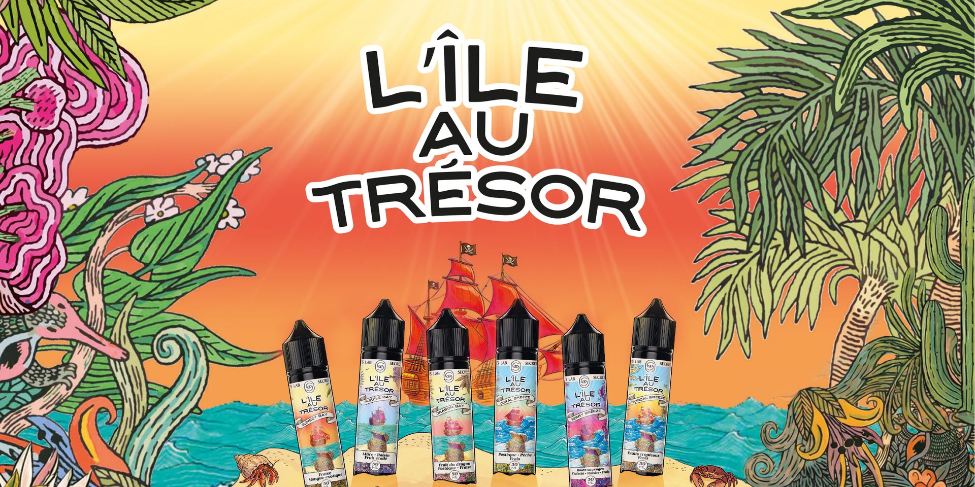 Une vape exotique, lumineuse et parfaitement équilibrée qui transporte instantanément vers les horizons tropicaux de L’Île au Trésor.