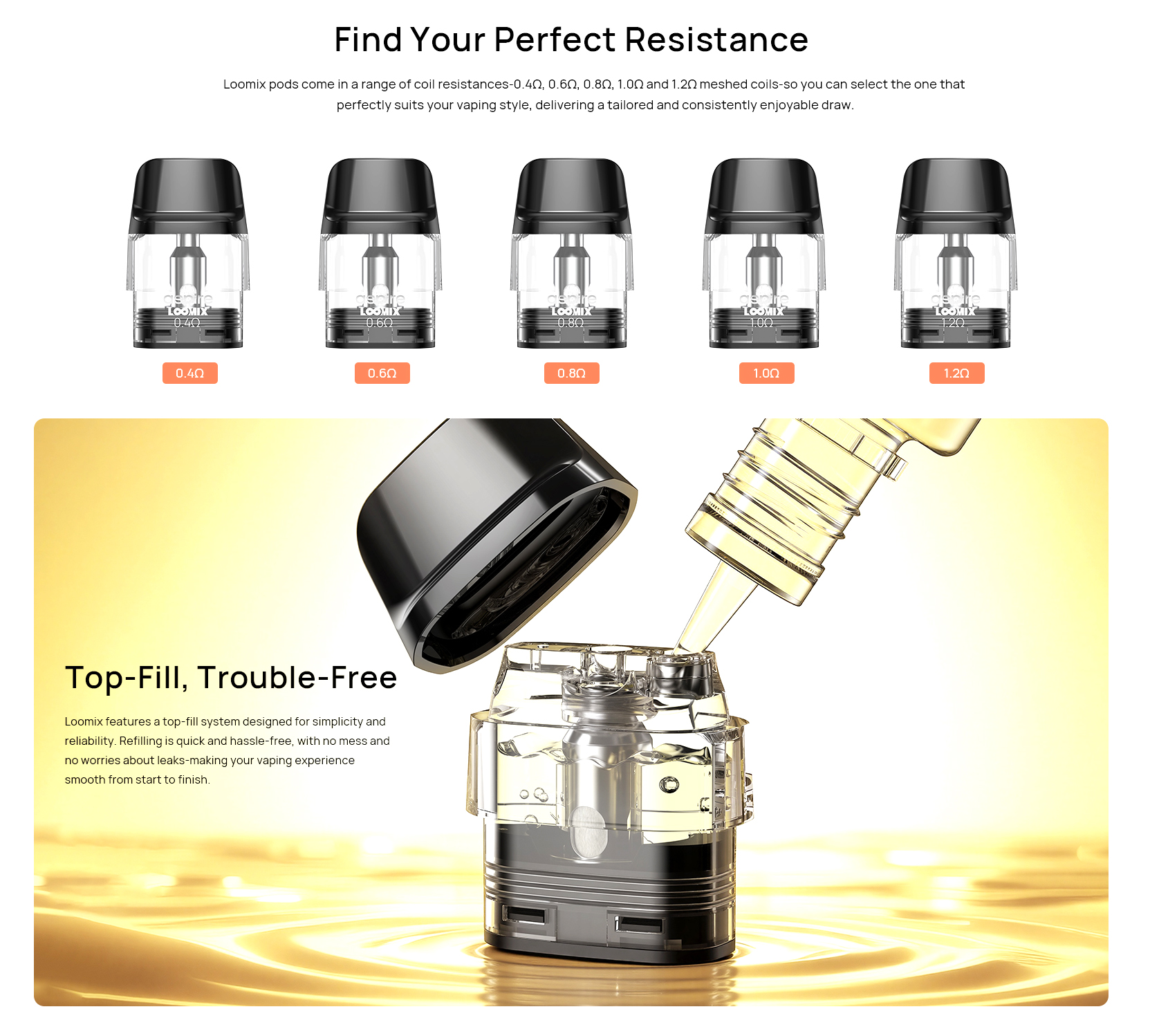 Les pods de remplacement Loomix 3ml d’Aspire sont spécialement conçus pour accompagner le kit Loomix et garantir une expérience de vape constante et qualitative.