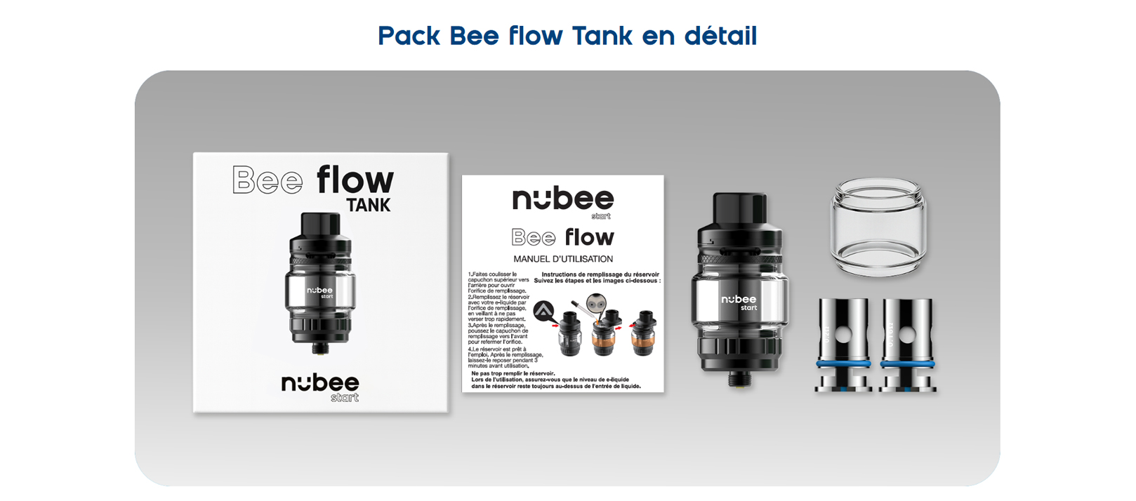 Le Bee Flow Tank de Nubee a été développé pour offrir une vape stable et qualitative à chaque bouffée. Sa conception optimise la circulation de l’air et l’alimentation en e-liquide afin d’éviter les sensations de brûlé et les dry hits. Le réservoir de 5 ml permet de profiter longtemps de son e-liquide sans remplissage fréquent, tandis que le système de remplissage ergonomique rend l’utilisation simple et propre. L’airflow réglable permet aux vapoteurs d’adapter précisément leur tirage selon leurs préférences, qu’ils recherchent un tirage équilibré ou plus aérien. Grâce à sa construction soignée et à ses résistances dédiées, le Bee Flow Tank met en valeur toute la richesse aromatique des e-liquides.