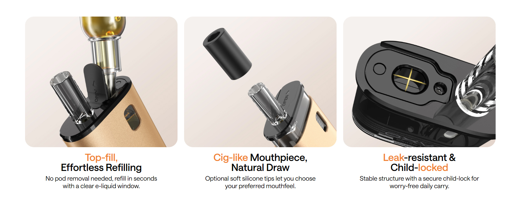 • Compatible avec les e-liquides aux sels de nicotine