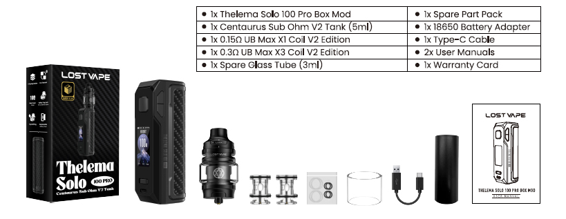 Kit Thelema Solo 100 Pro avec Centaurus Sub Ohm V2 - Lost Vape
