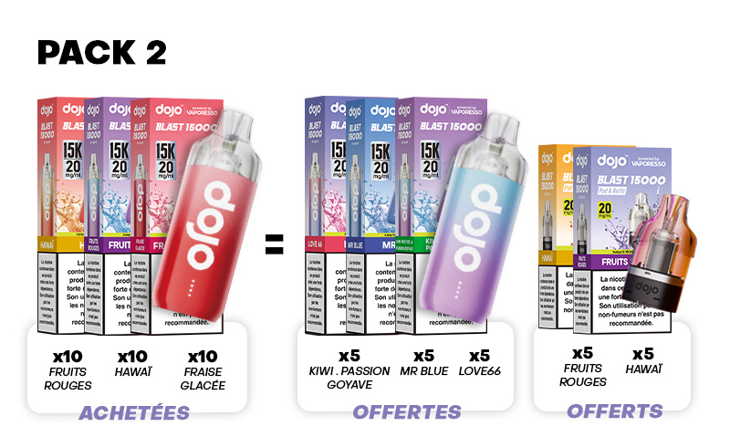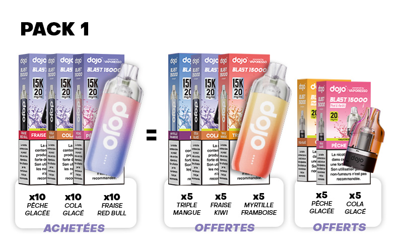 - 15 x Puff Dojo Blast 15K (offertes - au choix parmi les 4 packs proposés)